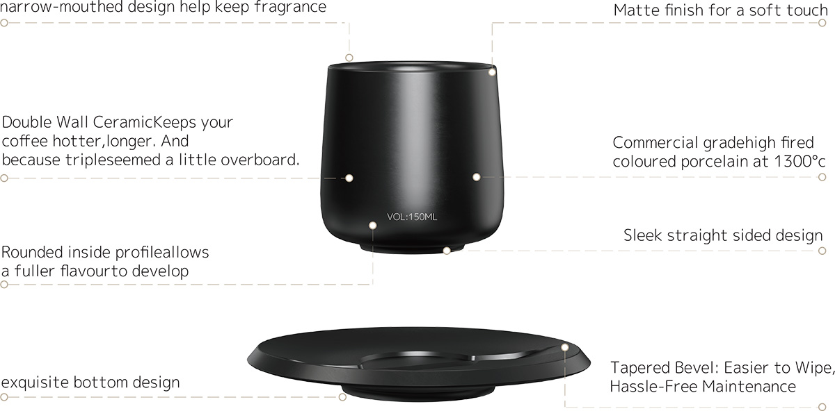 Introducing the 150ml Double Walled Coffee Cup and Saucer, it is crafted from durable high-fired ceramic. Its double-walled design locks in brew warmth longer while keeping the outer cup cool to touch, preventing scalds. The 150ml capacity suits daily sips, from light pour-over to small lattes, no excess. The matching saucer holds a stirring spoon. With a sleek, versatile look, it blends anti-scald practicality and ceramic sturdiness, elevating your everyday coffee ritual.