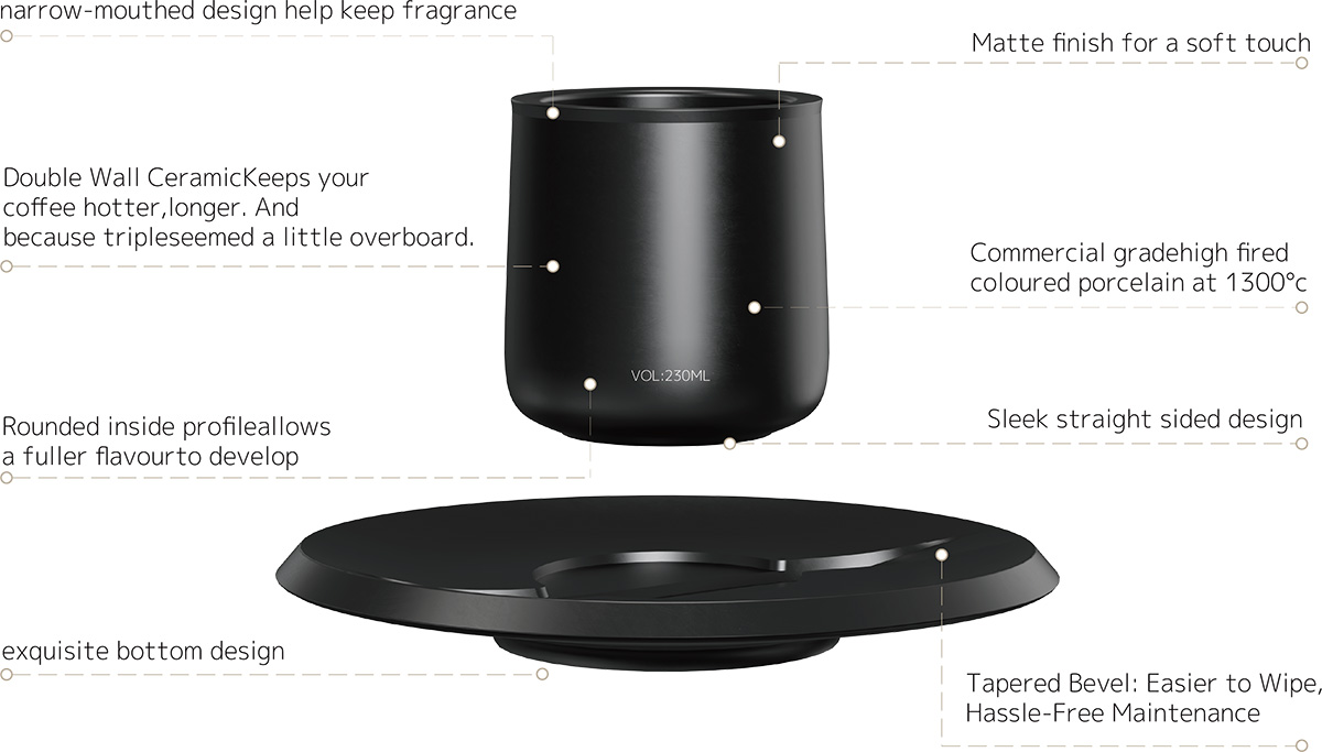 Introducing the 230ml Double Walled Coffee Cup and Saucer, it is made of durable high-fired ceramic. Its double walls keep brews warm and outer cup cool (anti-scald). 230ml fits cappuccino, lattes, milk, tea, etc. perfectly. The matching saucer holds a spoon or cookies, blending practicality and sleek style for daily coffee.