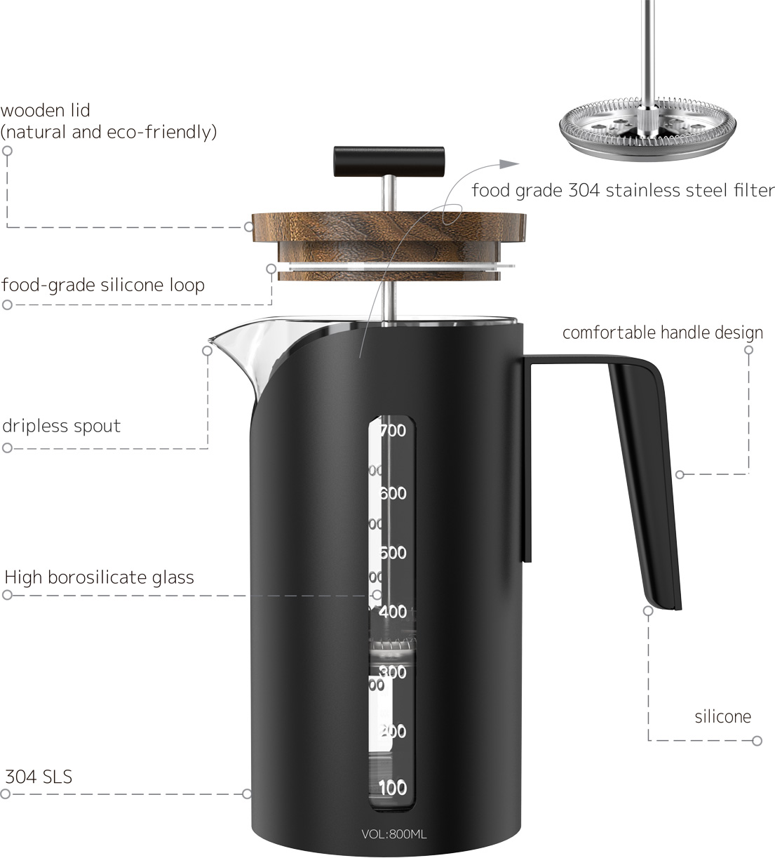 Elevate your coffee experience with the DHPO French Press, a seamless blend of beauty and functionality.